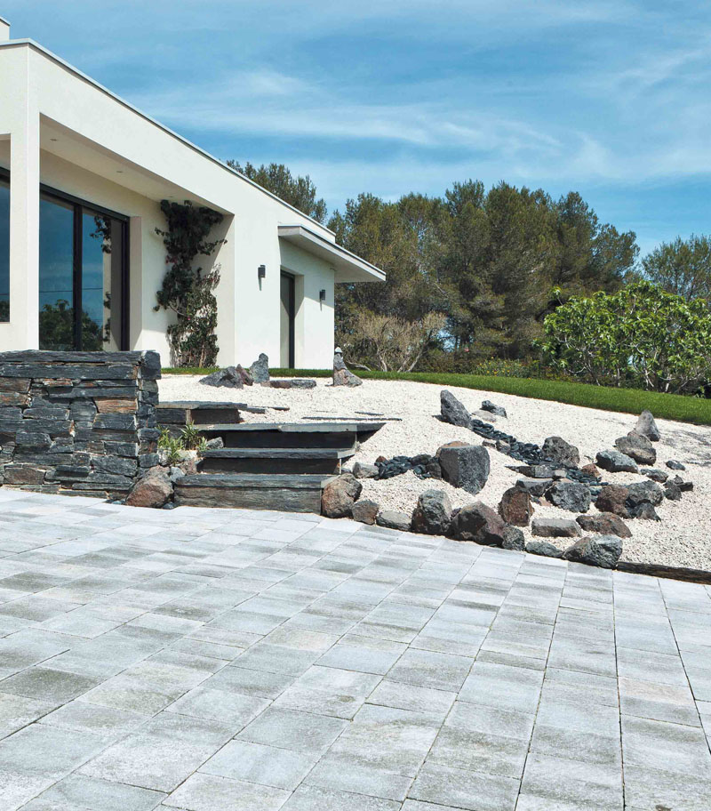 – Les pavages Durance et Stratus sont utilisés pour les allées et les autres lieux de carrossage en raison de leurs propriétés techniques et esthétiques.