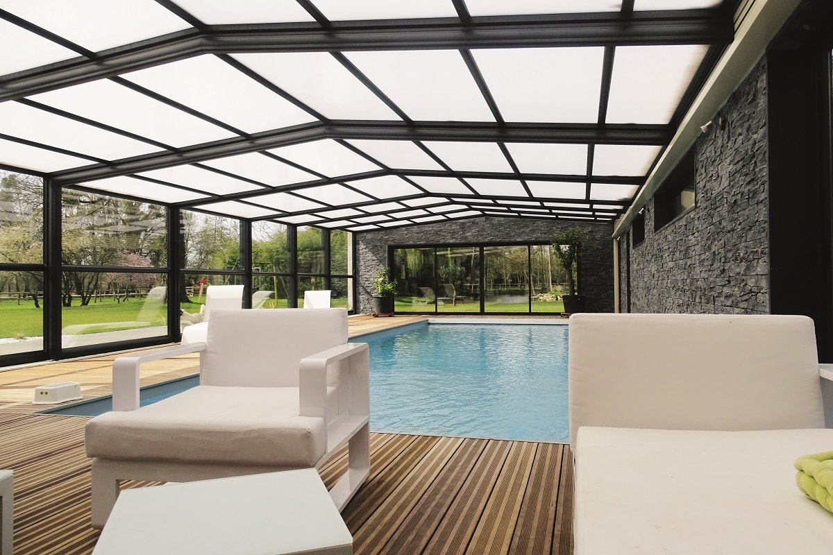 En fonction de la hauteur de la structure et des équipements présents, l’abri adossé constitue une pièce à part entière. Il permet d’envisager une utilisation de la piscine quasiment toute l’année. Aux beaux jours, le dégagement des modules d’un côté ou de l’autre et l’ouverture des parois place le bassin au grand air. Lorsque les températures baissent, la piscine se mue en centre de bien-être voire de remise en forme, l’abri faisant office de jardin d’hiver.