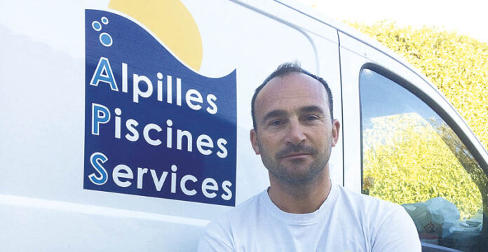 Fils de maçon, Laurent Mascagni choisi de faire carrière dans l’armée de l’air. Il sert en qualité de navigateur sur Mirage 2000. À l’approche de la quarantaine, après 20 années de service, se pose pour lui la question de sa reconversion. Il choisit de devenir piscinier. « Mon père était marbrier, se souvient Laurent Mascagni, et il m’arrivait, adolescent, de l’accompagner sur ses chantiers. Plus tard, Il y a 15 ans, j’ai construit avec lui ma piscine. Même si j’ai pris beaucoup de plaisir dans cet exercice, je dois bien convenir qu’avec le recul et l’expérience acquise, le local technique que j’ai réalisé à l’époque est un concentré de ce qu’il ne faut pas faire ! Il y a 3 ans, à l’issue de ma carrière militaire, je me suis rapproché de celui qui avait été mon instructeur dans l’armée et qui a créé Alpilles Piscines Services en 2006. Je cherchais, comme lui, une activité variée, loin d’un métier de bureau, et où l’on jouit d’une grande autonomie. J’ai travaillé une année avec lui, puis j’ai racheté l’entreprise il y a maintenant 2 ans, après avoir suivi une formation de 10 mois – pour moi indispensable – de technicien piscine à l’AFPA de Béziers. »