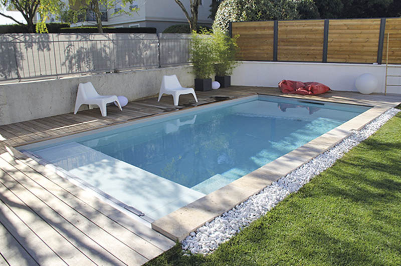 Quintessence a bien d’autres atouts, parmi lesquels : le moteur le plus performant du marché, garanti 5 ans et réparable, ainsi qu’un tablier muni d’ailettes pour empêcher les salissures de pénétrer dans le bassin. Discret, le tablier s’intègre sous le caillebotis immergé de Quintessence pour offrir une plage bain de soleil.