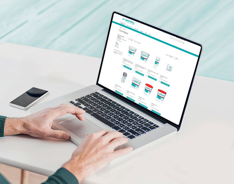 La plateforme Webshop (shop.bayrol.fr) est un espace d’achats en ligne créé pour faciliter la prise de commandes de réassorts. Après s’y être connecté, l’utilisateur a alors accès à :