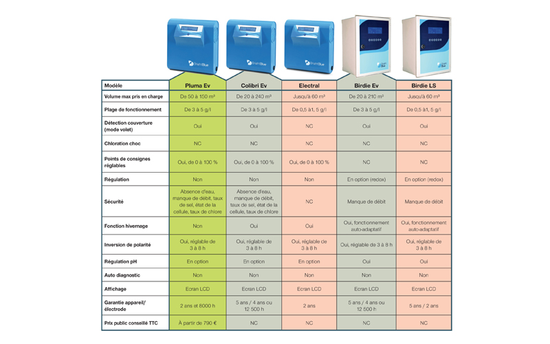 Les électrolyseurs BrightBlue se distinguent par leurs cellules monopolaires et leurs boîtiers compacts réalisés en polycarbonate très résistant. À noter également le dispositif de variation de l’alimentation qui permet de réduire la chaleur en fonctionnement.
