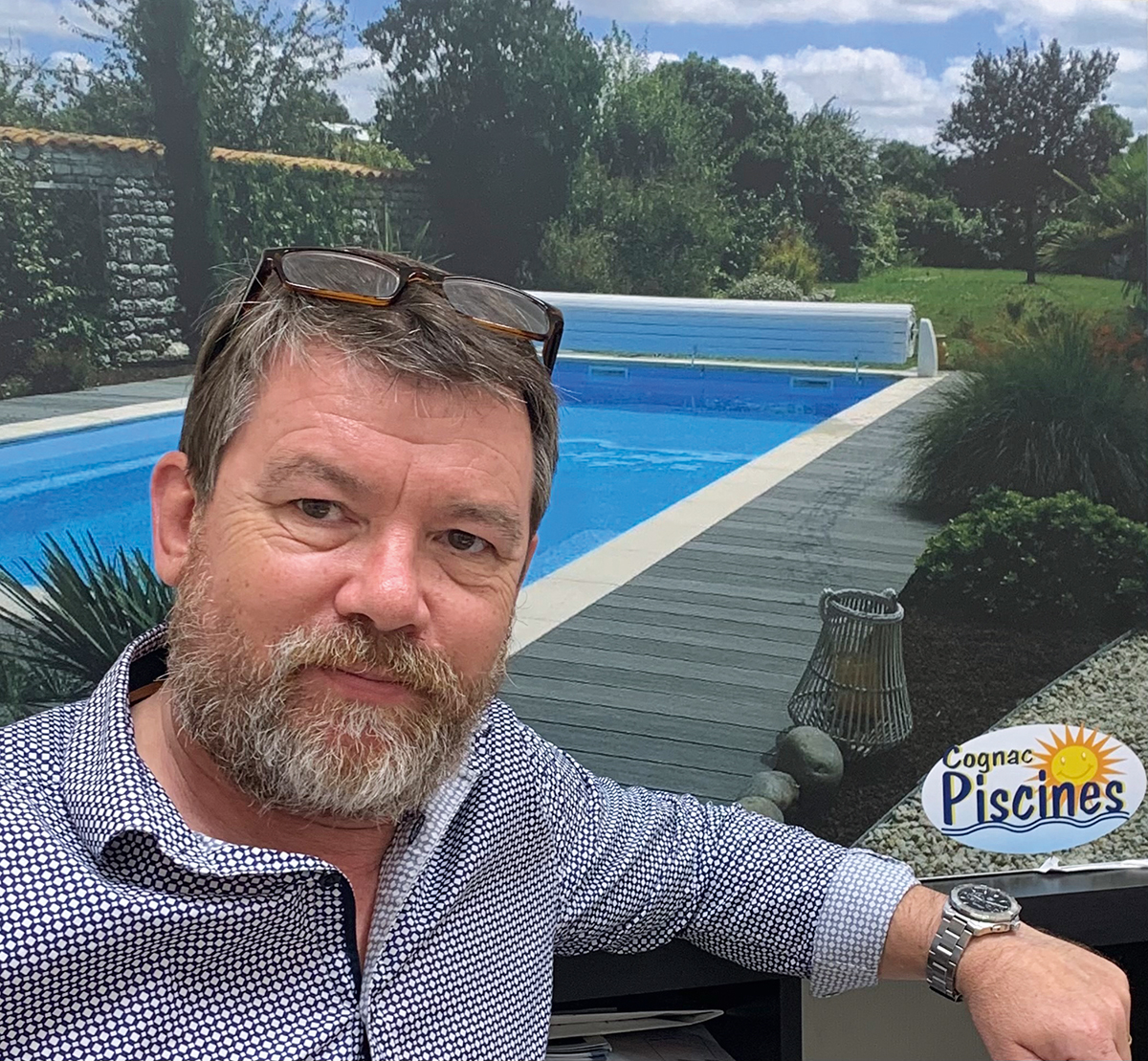 « Notre activité piscine s’est tellement développée ces 10 dernières années, que, progressivement, elle a fini par absorber notre activité bâtiment. Elle occupe aujourd’hui l’ensemble de nos équipes à 100 %. Nous proposons de la piscine coque et de la piscine béton armé. Nous faisons tout en interne : terrassement, pose d’étanchéité (membrane), construction, dépannage, entretien, pose d’équipements etc. Nous sommes passés de 20 à 30 piscines puis de 30 à 40, pour arriver aujourd’hui à entre 120 et 140 piscines neuves et à peu près d’une quarantaine de rénovations (du remplacement de liner à une transformation complète du bassin). Aujourd’hui, la construction représente 80 % de notre activité, et la rénovation, 20 %. Nous ne proposons que très peu de contrats d’entretien annuel, à destination principalement des professionnels (hôtels, kinés…) et de quelques particuliers en cas de besoin spécifique. Nous limitons ce type de service, à la forte saisonnalité à partir du mois de mai, car il demande du temps. En revanche, nous effectuons environ 250 remises en service et autant d’hivernages. Nous possédons également un magasin de 300 m2 géré par une responsable et par une personne au secrétariat/accueil. Sur la partie commerciale, deux personnes assurent les rendez-vous extérieurs et les études de projet. Nous avons trois équipes de pose qui sont spécialisées selon les produits et trois techniciens qui tournent en permanence pour assurer la maintenance. Un premier qui s’occupe à 100 % des entretiens et rend visite à de 5 à 7 clients par jour. Un deuxième qui se charge des liners à temps complet depuis avril-mai. Et un dernier qui intervient principalement pour des dépannages. Nous avons également une équipe dédiée aux finitions. Cognac Piscine rassemble aujourd’hui une quinzaine de personnes avec mon épouse et moi-même. Quand j’ai repris, nous étions trois.J’ai de la chance d’avoir une équipe assez complète, constituée de personnes compétentes avec lesquelles je prends beaucoup de plaisir à travailler. »