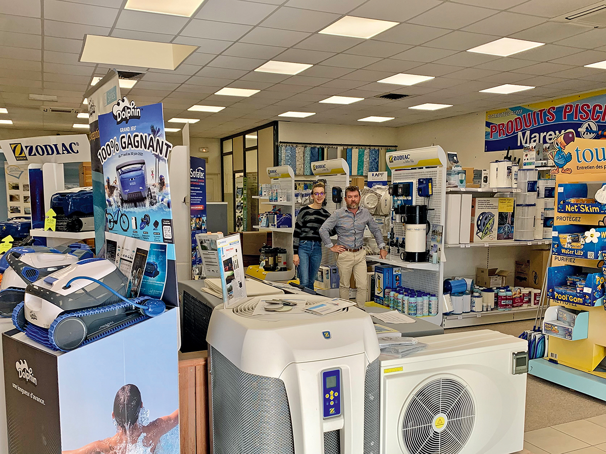 « Notre activité piscine s’est tellement développée ces 10 dernières années, que, progressivement, elle a fini par absorber notre activité bâtiment. Elle occupe aujourd’hui l’ensemble de nos équipes à 100 %. Nous proposons de la piscine coque et de la piscine béton armé. Nous faisons tout en interne : terrassement, pose d’étanchéité (membrane), construction, dépannage, entretien, pose d’équipements etc. Nous sommes passés de 20 à 30 piscines puis de 30 à 40, pour arriver aujourd’hui à entre 120 et 140 piscines neuves et à peu près d’une quarantaine de rénovations (du remplacement de liner à une transformation complète du bassin). Aujourd’hui, la construction représente 80 % de notre activité, et la rénovation, 20 %. Nous ne proposons que très peu de contrats d’entretien annuel, à destination principalement des professionnels (hôtels, kinés…) et de quelques particuliers en cas de besoin spécifique. Nous limitons ce type de service, à la forte saisonnalité à partir du mois de mai, car il demande du temps. En revanche, nous effectuons environ 250 remises en service et autant d’hivernages. Nous possédons également un magasin de 300 m2 géré par une responsable et par une personne au secrétariat/accueil. Sur la partie commerciale, deux personnes assurent les rendez-vous extérieurs et les études de projet. Nous avons trois équipes de pose qui sont spécialisées selon les produits et trois techniciens qui tournent en permanence pour assurer la maintenance. Un premier qui s’occupe à 100 % des entretiens et rend visite à de 5 à 7 clients par jour. Un deuxième qui se charge des liners à temps complet depuis avril-mai. Et un dernier qui intervient principalement pour des dépannages. Nous avons également une équipe dédiée aux finitions. Cognac Piscine rassemble aujourd’hui une quinzaine de personnes avec mon épouse et moi-même. Quand j’ai repris, nous étions trois.J’ai de la chance d’avoir une équipe assez complète, constituée de personnes compétentes avec lesquelles je prends beaucoup de plaisir à travailler. »