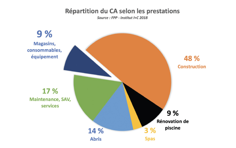 Lorsque l’on regarde les chiffres du baromètre de la FPP, le magasin représenterait 9 % du CA moyen d’un piscinier. Un magasin où le client vient acheter des équipements et des consommables.