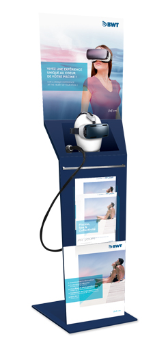 La tablette est enfin un outil relationnel qui permet d’améliorer et de personnaliser la relation avec votre client (identification du client, accès à son historique d’achat, informations sur sa piscine, ses équipements, etc.) pour plus de satisfaction et une meilleure fidélisation (enrichissement des données client). La réalité virtuelle enfin, même si elle n’en est encore qu’à ses débuts, permet de proposer, à l’aide d’un casque, une expérience immersive et ludique à vos clients.