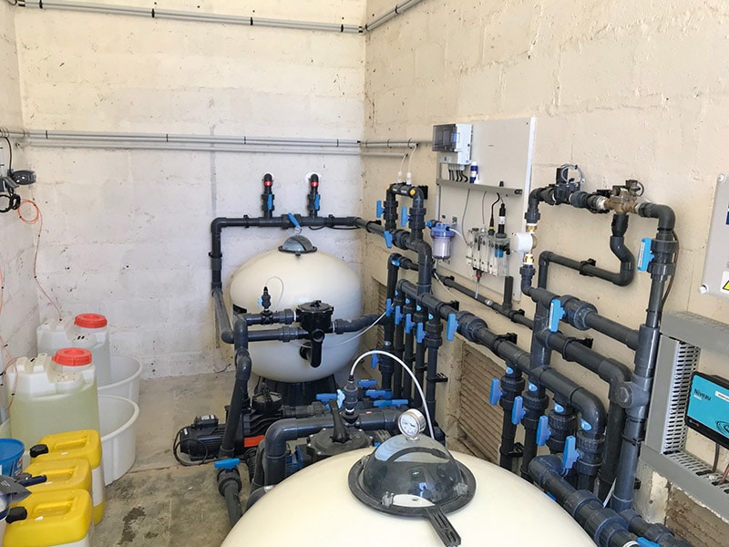 « Le maçon s’est chargé de la réhabilitation de ce vieux transformateur électrique. Lors de notre intervention, les équipements de l’ancien transformateur étaient déjà partis. Nous avons alors creusé des tranchées pour faire la partie tuyauterie et avons installé les différents appareils », nous précise le piscinier.