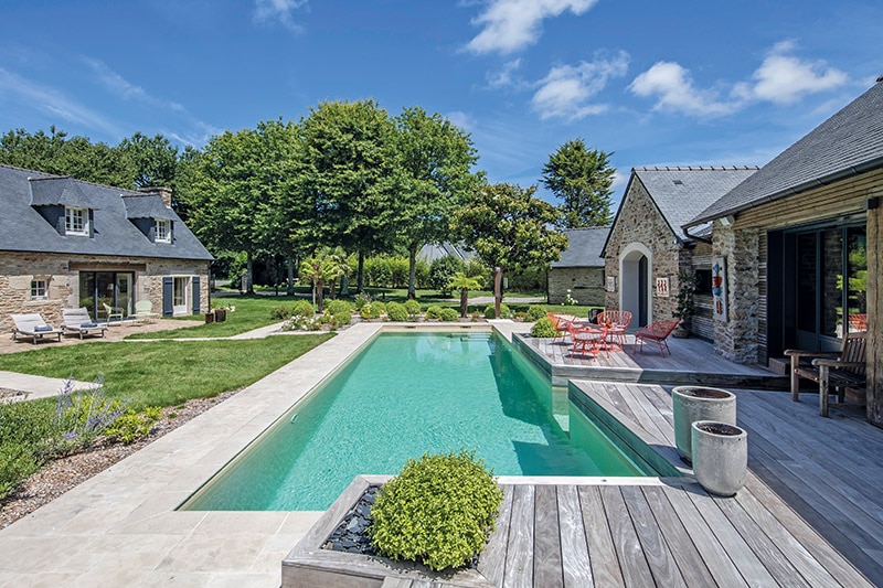 “La vocation de l’entreprise est de proposer des compétences techniques. Nous sommes là pour que la piscine fonctionne et que les clients soient satisfaits. Du fait de notre spécialité en piscine intérieure, nous sommes en relation directe et importante avec les architectes et avec tous les autres corps d’état. La principale difficulté de ce genre de projet est de coordonner tout le monde. Nous n’intervenons que sur le bassin et ne proposons pas de compétences liées à l’intégration paysagère. Ce n’est pas quelque chose vers laquelle nous tendons. Nous mettons en relation les clients avec des professionnels spécialisés. C’est pour cette raison que nous avons conseillé au client de collaborer avec une architecte-paysagiste avec laquelle nous travaillons très régulièrement sur Quimper. Les aménagements paysagers ont ainsi été pensés par Catherine Barbier. Un paysagiste a par la suite donné vie à ses plans. Une deuxième architecte est intervenue sur ce projet. Virginie Laurens, architecte d’intérieur à Saint Malo, a travaillé sur le projet après que le bassin ait été construit et que les aménagements paysagers extérieurs aient été réalisés. Elle s’est occupée de l’aménagement de la grange et a construit le local technique tout en respectant nos besoins techniques. ”