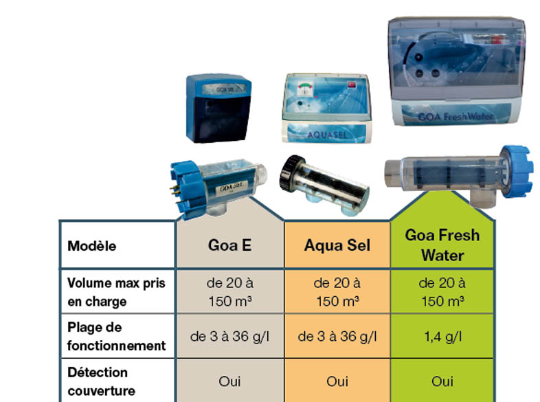 Une plage de fonctionnement élargie (de 3 à 36 grammes de sel par litre d’eau), des cellules de taille réduite qui s’intègrent facilement aux locaux techniques exigus : les gammes d’électrolyseurs Aqua-sel et Goa E savent parfaitement composer avec les contraintes.