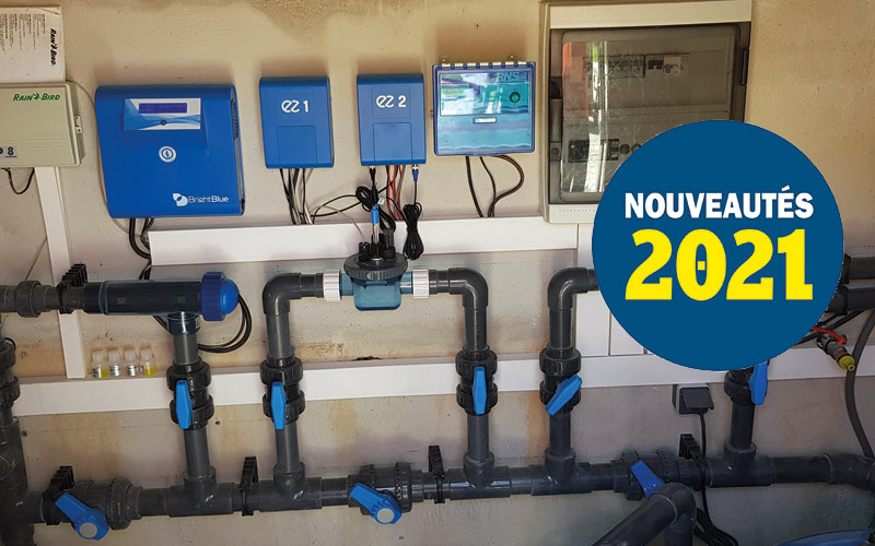 • EZ2 : niveau pH et chlore, pression eau, position volet électrique, programmation de 3 appareils en contact sec