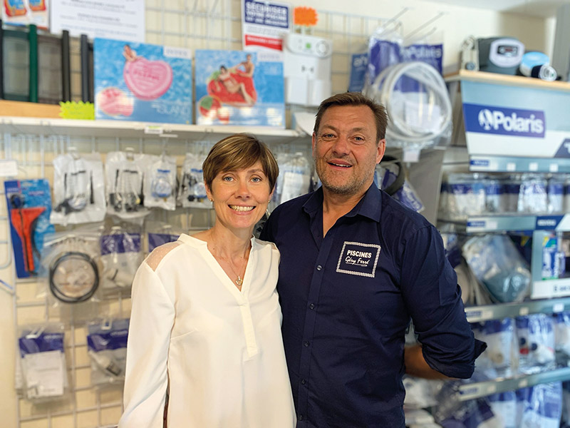 Sylvie prend en charge la partie administrative ainsi que le magasin et pour ma part, je m’occupe des chantiers. 10 années durant, nous proposons des piscines béton maçonnerie avec étanchéité PVC armé. Pendant toutes ces années, je rencontrais régulièrement chez Aqualux, un de nos fournisseurs, les dirigeants du fabricant de piscines monocoques polyester France Piscines Composites. Ils me proposent alors de faire un essai avec leurs produits et je me laisse convaincre. Je suis séduit par la gamme et par la qualité des produits proposés ainsi que par la facilité et la rapidité d’installation. Les piscines coques progressent alors rapidement dans notre offre pour représenter 50 % des ventes et aujourd’hui quasiment 100 % de celles-ci. Sur la centaine de piscines que nous installons chaque année, seulement 2 ou