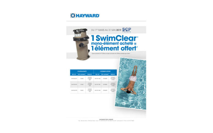 Du 1er mars au 31 mai 2019, pour chaque filtre SwimClear mono-élément acheté chez SCP France, l’acheteur se voit offrir une cartouche de remplacement (dans la limite de 75 filtres et de 5 filtres achetés par client).