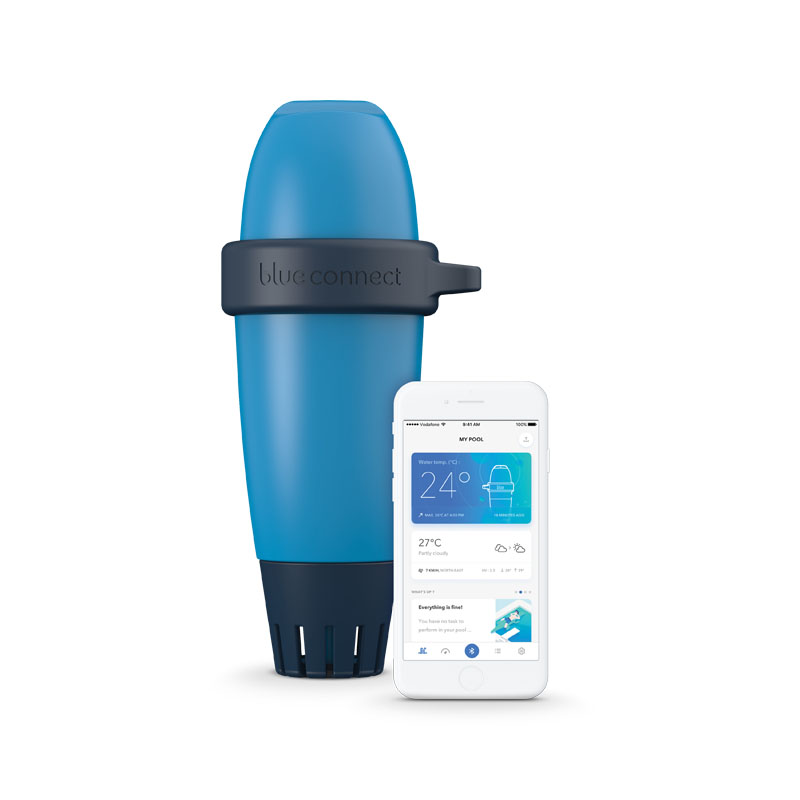 L’analyseur connecté Blue Connect Plus peut être placé dans la piscine, en flottaison ou installé dans le local technique si la piscine est équipée d’une couverture automatique. Relié au réseau Sigfox ou directement sur le wi-fi de l’habitation, il fournit à l’utilisateur les données en temps réel. Blue Connect Plus analyse l’eau des piscines traitées au chlore au brome ou utilisant un électrolyseur de sel. Les propriétaires de spas peuvent également avoir recours à Blue Connect Plus pour analyser l’eau de leur équipement.