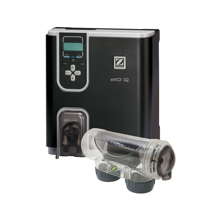 L’électrolyseur au sel connecté eXO® iQ de Zodiac® est relié à l’application iAquaLink, interface mobile permettant de contrôler l’équipement depuis le smartphone. Ce pilotage centralisé des équipements permet le contrôle instantané de la qualité de l’eau via les sondes intégrées à l’électrolyseur.