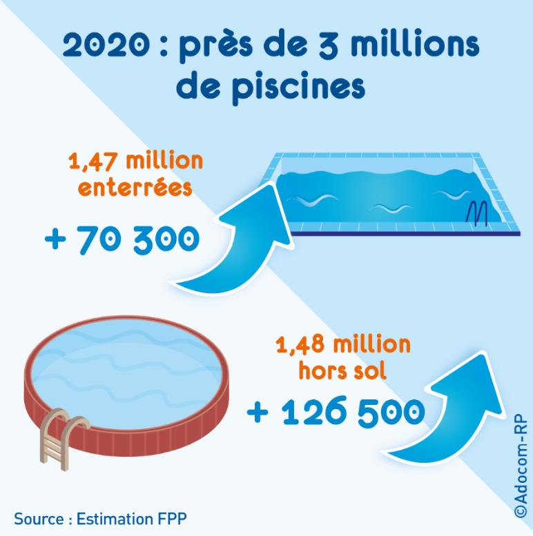 le nombre de piscines vendues en hausse de 28 % : le premier confinement a fait comprendre aux Français l’importance d’être bien chez soi, et que l’installation d’une piscine permet de créer un espace de vie supplémentaire, à la fois sûr et convivial, qui contribue à la santé et à la sérénité.
