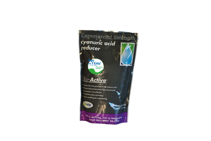 gache chimieChacun sait qu’un taux trop élevé de stabilisant, ou acide cyanurique, bloque l’action du chlore et limite son pouvoir désinfectant. La seule solution pour s’en débarrasser était, jusqu’à aujourd’hui, de vidanger des mètres cubes d’eau.