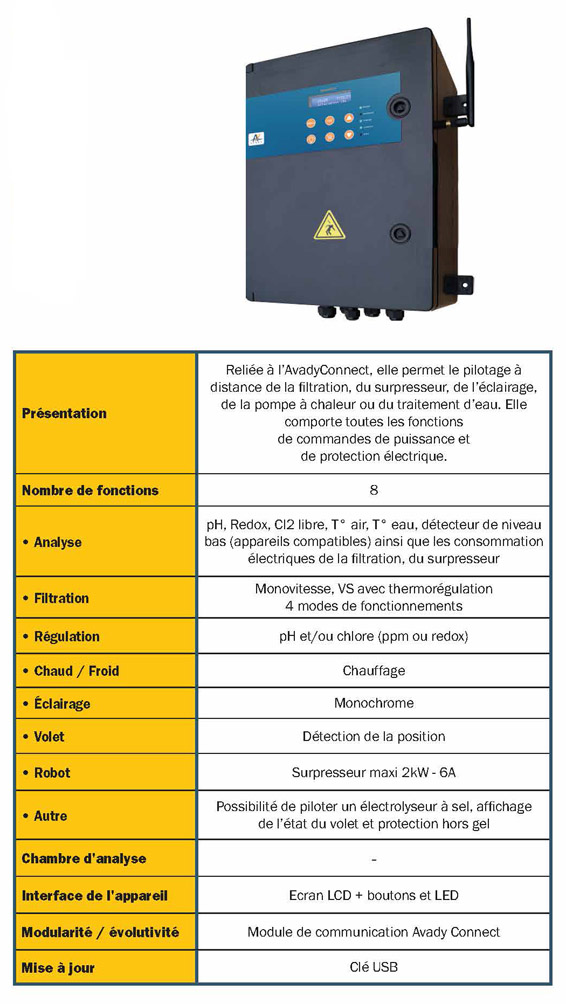 L’AvadyConnect permet de consulter la liste du parc de bassins, les relevés de mesure manuels et l’historique des interventions réalisées (12 mois).