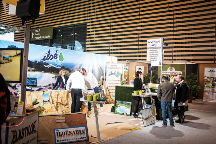 Autour de projets de piscines paysagées, Iloé Piscine a profité de sa présence sur le salon pour présenter aux paysagistes son concept de construction Gumiloé. Il s’agit de bassins de forme libre avec plage immergée, et dont le revêtement Elastiloé combine en amalgame membrane armée et résine sablée.
