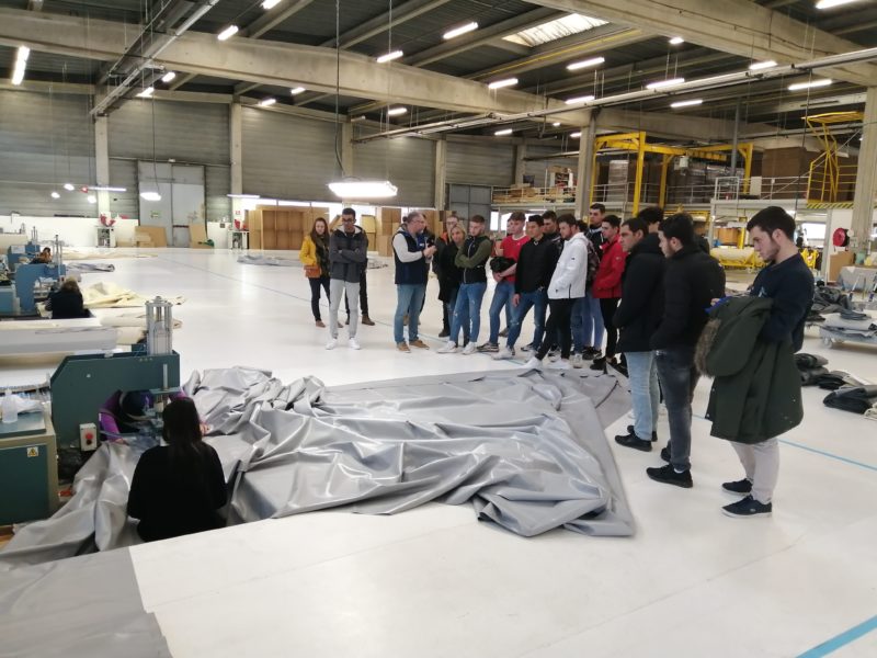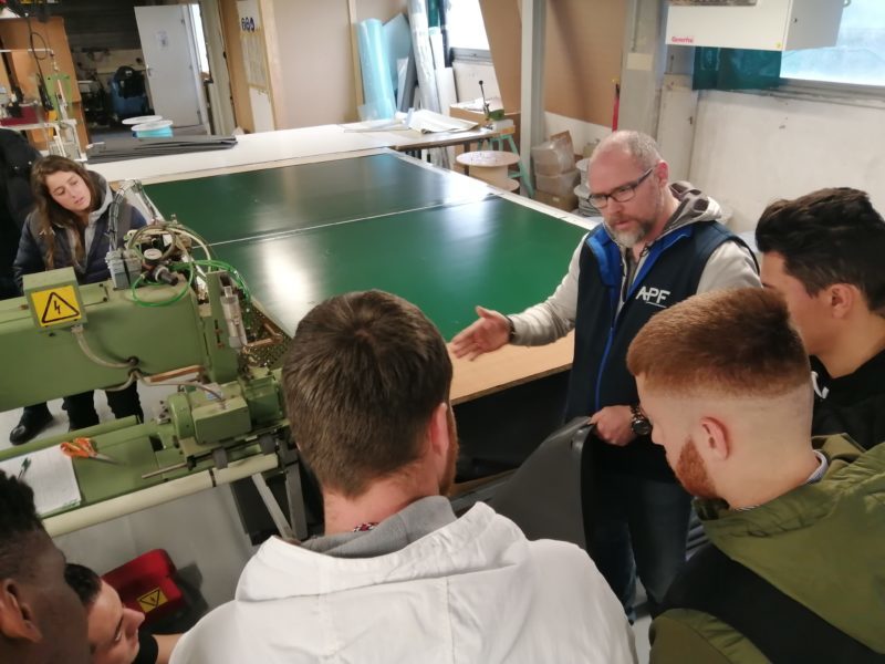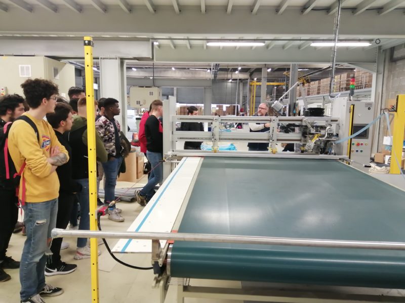 Après un petit-déjeuner d’accueil, cette journée découverte a débuté par une visite de l’atelier liner guidée par Alexandre Perrier, le responsable de production. Les élèves ont ainsi pu passer en revue l’ensemble des différents procédés de fabrication de la chaîne de production du liner tels que les découpes type escalier, l’assemblage, le nettoyage et le pliage du revêtement.