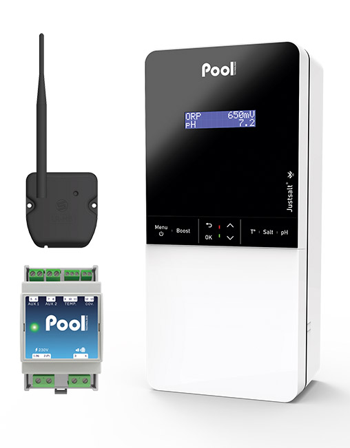 Le Justsalt® Pro Connect intègre, de série, une puce Bluetooth. Cette connectivité autorise le contrôle à distance de l’appareil. Grâce à un boîtier de commande, une antenne relais et l’application INDYGO, l’utilisateur peut gérer sa piscine (filtration intelligente thermorégulée, protection hors gel automatisée, gestion, pilotage et programmation des équipements auxiliaires) quel que soit l’endroit où il se trouve. Il peut paramétrer et interagir avec sa piscine à partir de la connexion sans fil d’un réseau internet domestique.