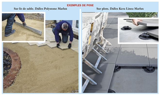 La pierre reconstituée est un produit industriel standardisé répondant à des normes de fabrication particulièrement exigeantes. Ces normes définissent notamment son caractère non gélif, sa porosité, son absence de glissance mais aussi ses dimensions. Longueur, largeur et épaisseur des produits sont parfaitement standardisées et calibrées et ne doivent pas présenter un écart type supérieur à 1 mm. C’est incontestablement un plus qui facilite la pose du produit. À noter que les techniques de fabrication permettent aujourd’hui la production de dalles de grandes dimensions (exemple : 1 m × 0,60 m).