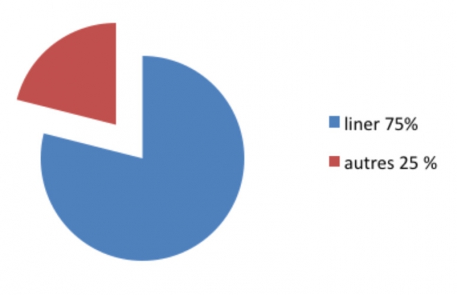 On estime aujourd’hui que le liner représente entre 75 et 80 % des étanchéités de piscines neuves (hors piscines coques et piscines hors sol basiques). Le volume représenté par la rénovation représente environ 20 000 unités.
