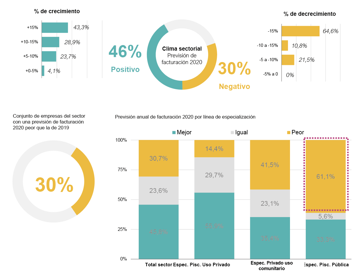 Présenté lors du Foro Piscina & Wellness Digital, fin 2020, le baromètre sectoriel, réalisé en partenariat par l’ASOFAP (fédération des professionnels de la piscine espagnole) et le Salon Piscina & Welness, montre l’évolution annuelle du secteur et les perspectives de croissance du marché de la piscine espagnol.