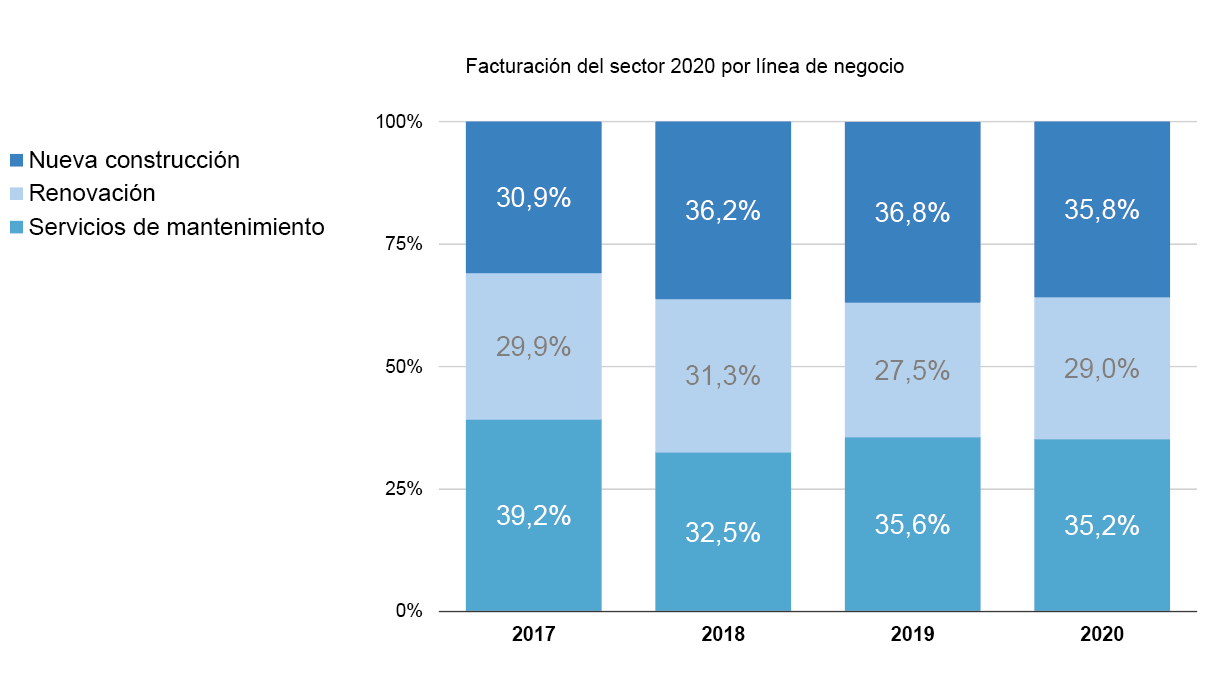 • 35,8 % du chiffre d’affaires réalisé en construction : part de la construction dans l’activité totale des professionnels de la piscine espagnols. La maintenance représente 35,2 % de leur activité et la rénovation, 29 %. Cette répartition est stable depuis plusieurs années.