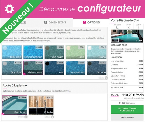 Alors que Piscinelle vient de fêter ses 40 ans, le constructeur et fabricant lance un configurateur de devis en ligne. Ainsi, la marque a souhaité développer son accompagnement auprès de ses possibles futurs clients.