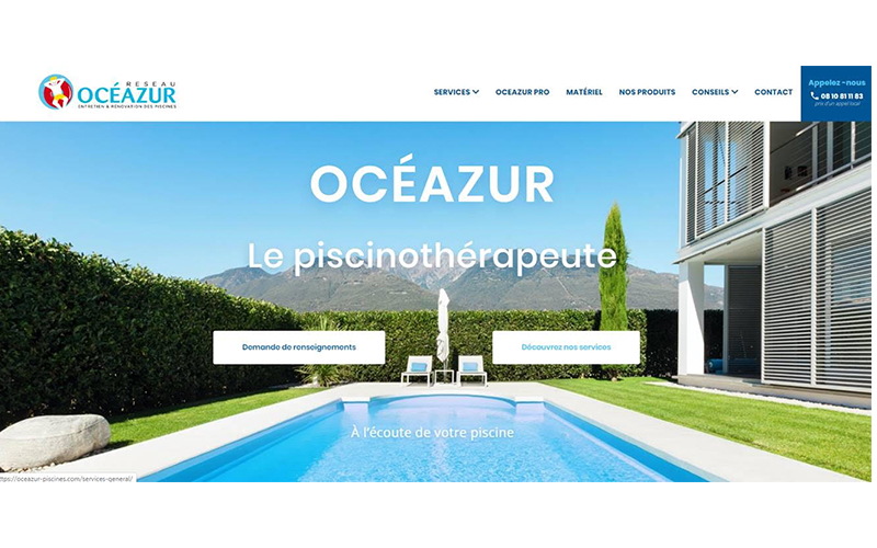 Océazur dévoile son nouveau site web. Parmi les nouveautés de cette interface, la marque met en avant sur sa home page Océazur Pro, une nouvelle rubrique à destination des professionnels tels que les copropriétés, hôtels, gîtes, clubs de sport, centres de remise en forme, kinés, campings, architectes… Plusieurs services sont à leur disposition : un bureau d’études, un service de maintenance et dépannage ou encore des formations.