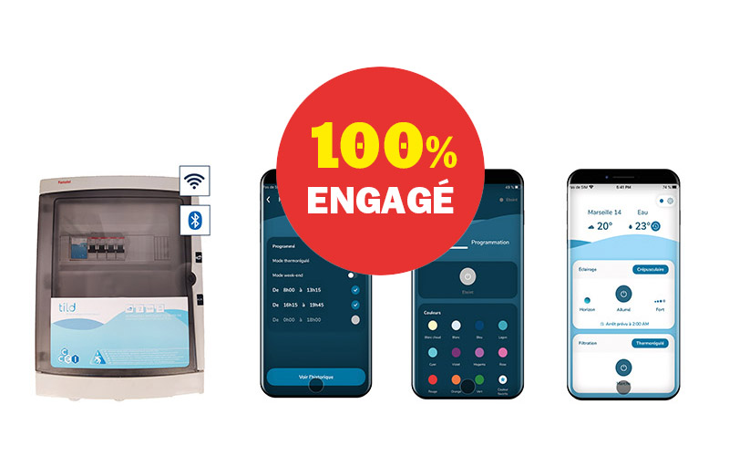 tild, c’est un coffret électrique nouvelle génération entièrement assemblé à Marseille, au siège de la société. Ce nouvel appareil permet de piloter les fonctions essentielles de la piscine intelligemment avec son smartphone.