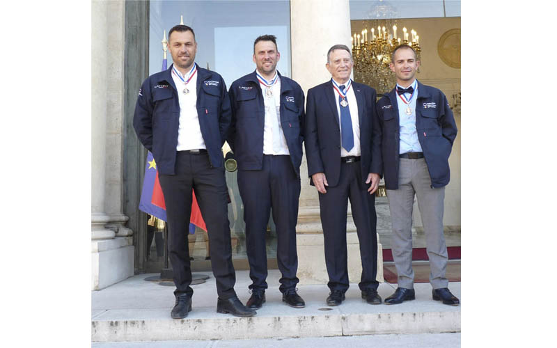 Le 13 mai dernier, dans le cadre du 26e concours « Un des Meilleurs Ouvriers de France », les nouveaux MOF Métiers de la piscine ont été reçus à la Sorbonne, afin de se voir remettre leur « Cravate », puis à L’Élysée, où ils ont été félicités par le Président de la République.