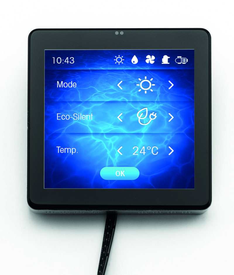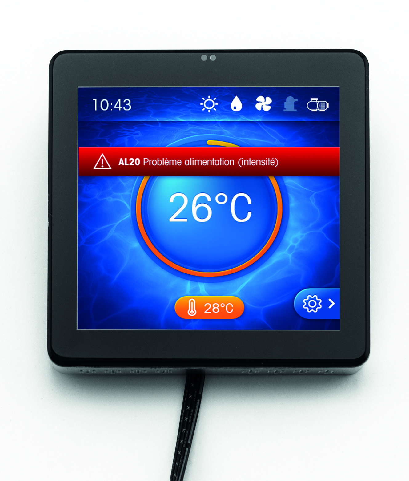 La gamme Master-Inverter est composée de 8 modèles Full Inverter R32 pour des tailles de bassins allant de 15 à 160 m3. Dotée d’un système de régulation intelligent, la PAC Master-Inverter permet de contrôler la puissance en fonction de la température ambiante. La saison 2020 marque l’intégration d’un nouvel écran digital tactile en option. Grâce à cette interface, l’utilisateur peut naviguer et accéder aux différents modes de fonctionnement : Boost, Smart et Éco-Silence. L’utilisateur peut également, via l’écran tactile, régler les paramètres d’affichage et accéder en simultané à toutes les informations liées au fonctionnement de la PAC. L’interface diagnostique également les erreurs et affiche les alertes lorsque la PAC présente des anomalies.