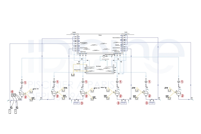 • Équipement des trois autres bassins : régulation chlore/pH (sauf bain froid), échangeur de température, régulation du niveau automatique…