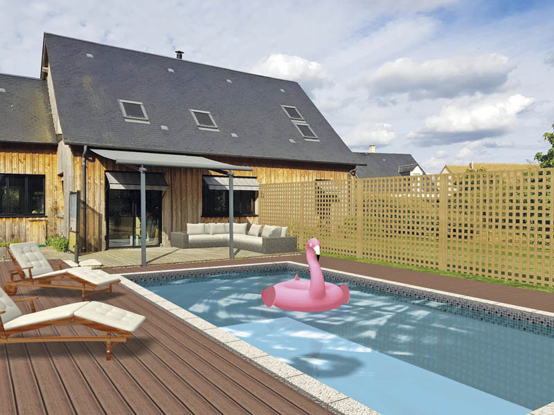 - créer des projets de piscines en 3D complets, intégrant aménagements, terrasses, murs, pelouses, transats, arbres, etc. à partir de plusieurs photos prises chez le client sous des angles différents ;