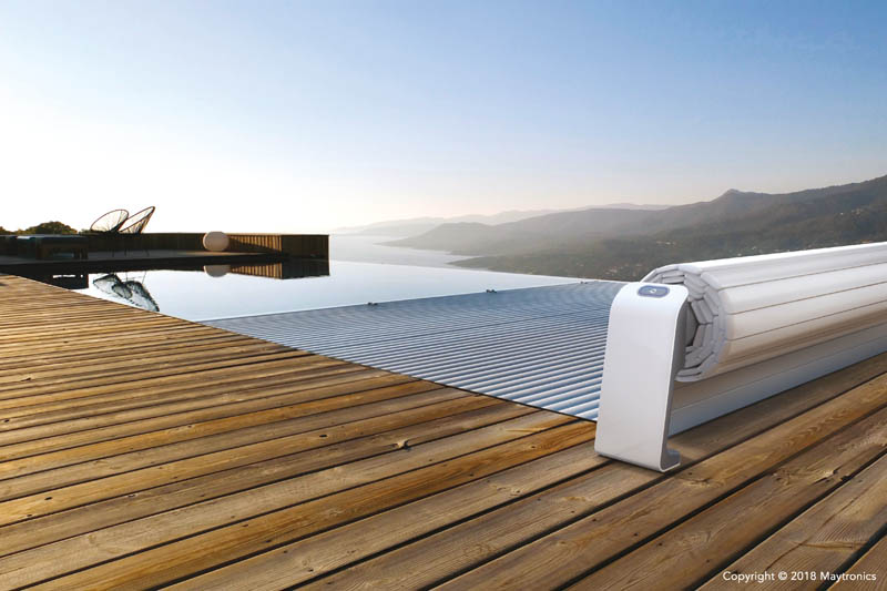 Présenté en avant-première à Lyon durant le dernier salon professionnel Piscine Global, le dernier né des volets hors sol de Maytronics est disponible depuis le début du mois de février. Maytronics Cover, c’est son nom, est à la fois simple à installer et à utiliser. Il bénéficie d’un design à la fois soigné et épuré qui lui permet de trouver sa place dans tout type d’environnement. Ses supports sont disponibles en deux finitions : blanc laqué ou inox poli. Pour plus de confort une ingénieuse télécommande amovible, associé à un support mural, permet à l’utilisateur de commander l’ouverture et la fermeture de la couverture.