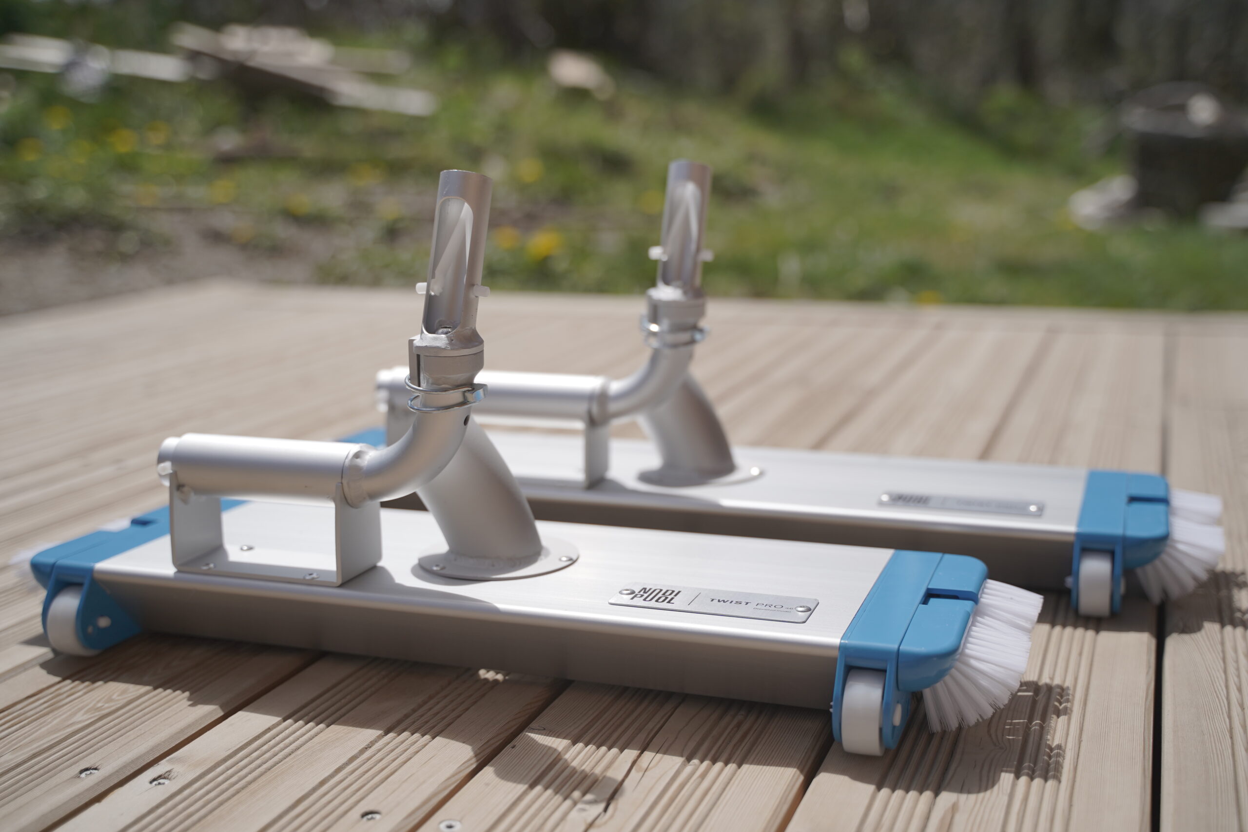 Le premier exemple de ce procédé est Twist Pro. Ce balai 3 en 1 permet de nettoyer les coffres de volet immergé et les fonds de piscine. Nodipool promet un temps d’entretien divisé par 2 en combinant les fonctionnalités d’une épuisette, d’un aspirateur de fond et d’une brosse d’angle.