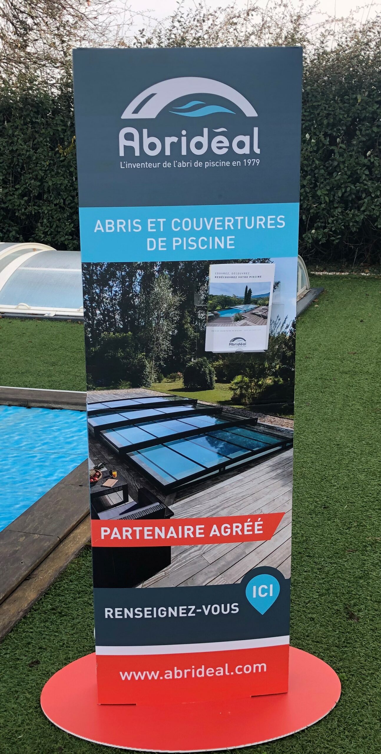 Dans le cadre d’un partenariat, la marque Abridéal délivre à ses collaborateurs un kit de communication composé de deux totems en support de vente auprès de leurs clients. Suite à cette première découverte du produit, un conseiller Abridéal intervient afin d’étudier le futur projet.