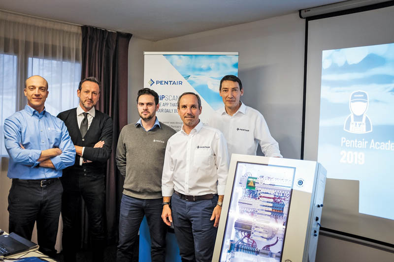 Une partie de l’équipe Pentair Europe était présente à la session lyonnaise de la Pentair Académy : Matthieu Selva (responsable produit et marketing Europe), Gianluca Inselvini (responsable de marché France), Romain Mathoud (promoteur des ventes Est France ) , Brice Nicolas (directeur Pentair Europe) et Arnaud Besson (responsable support technique France).