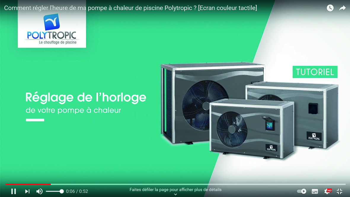 Sur sa chaîne Youtube, Polytropic propose un ensemble de vidéos afin de répondre aux questions les plus fréquemment posées par ses utilisateurs sur sa gamme de pompes à chaleur. Disponibles en français et en anglais, ces tutos donnent des conseils et traitent de différentes thématiques telles que l’utilisation de la PAC, l’hivernage et la remise en route, l’entretien, etc. Une F.A.Q. est également consultable dans la rubrique Assistance du site.