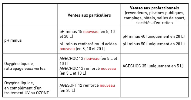 Le tableau ci-dessous récapitule les différentes évolutions des gammes de produits proposées par Gaches Chimie.