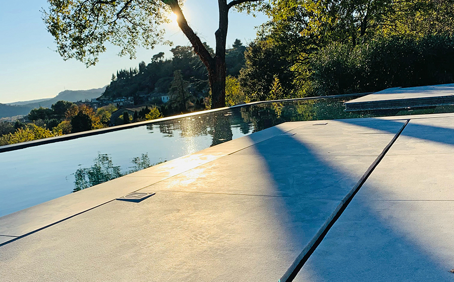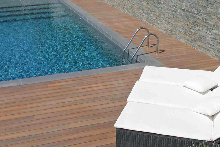 Bois naturel ou composite, dallages en pierre naturelle, grés cérame ou pierre reconstituée, repenser les abords du bassins (terrasse, margelles…) permet de réinventer l’espace piscine de vos clients.