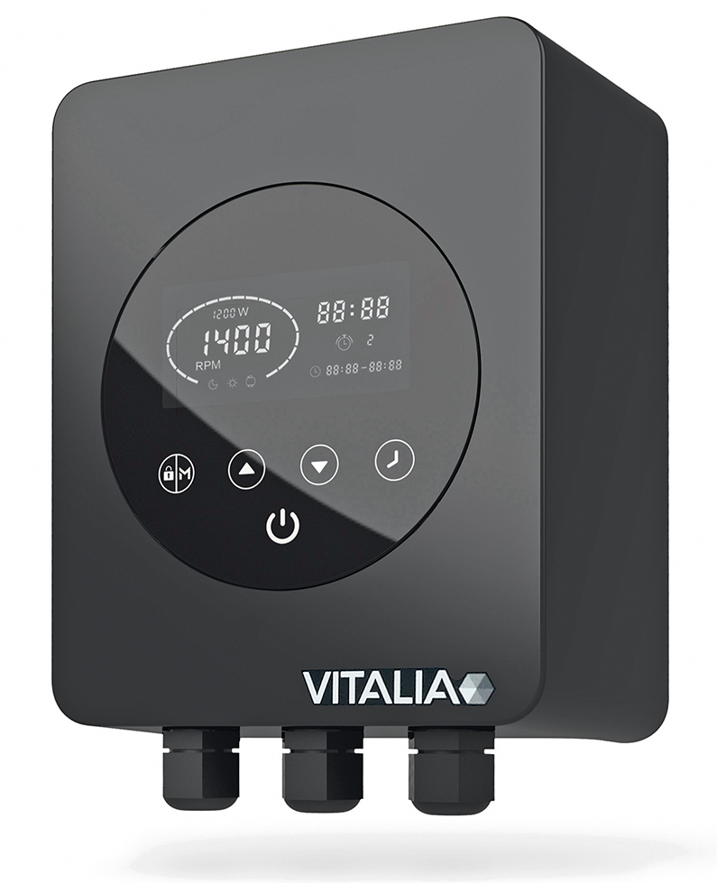 Le régulateur de vitesse Vitalia VS permet de passer de la vitesse fixe à la vitesse variable sans changer de pompe. Il s’adapte sur la majorité des pompes du marché et permet une économie d’énergie jusqu’à 63 % ainsi qu’une diminution sonore jusqu’à 30 %. Ses 3 modes (Boost/Eco/Silence) sont facilement accessibles et personnalisables via son écran tactile.