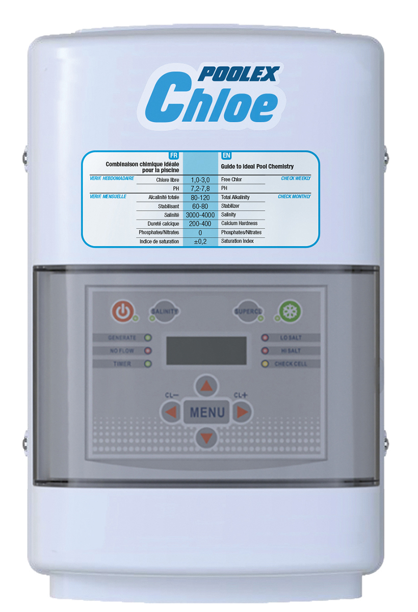 L’électrolyseur Chloé par Poolex propose des fonctionnalités pour une utilisation intuitive : fonctionnement basse salinité, nettoyage automatique de la cellule, alarmes de niveau de salinité et de débit d’eau insuffisant, ainsi que détection de couverture. La gamme se décline en 5 modèles et convient aux volumes de 35 à 115 m3.