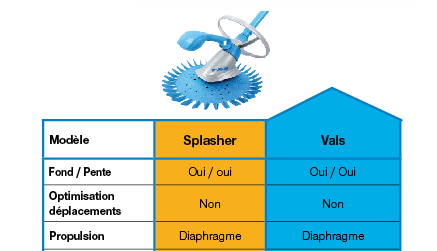 La puissance hydraulique permet au robot de s’activer tout en se faisant oublier. Grâce à la technologie à membrane, le balai hydraulique Vals sait se faire discret au moment de fonctionner. Relié à la prise balai ou au skimmer, il aspire les impuretés au fond du bassin et sur les parois.