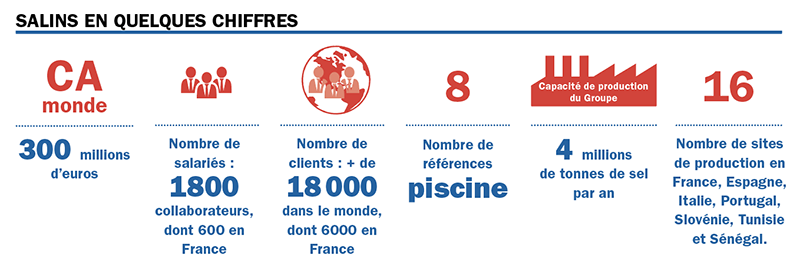 Même si l’activité du groupe Salins est uniquement basée sur la production de sel, celui-ci est commercialisé sous toutes ses formes pour toutes les utilisations possibles : en sel de table, pour l’industrie, l’agro-alimentaire, le déneigement ou l’agriculture (complément alimentaire pour les animaux) et, bien-sûr, pour la piscine… soit près de 14 000 façons de l’utiliser. Déjà fabriqué à l’époque romaine, le sel est extrait soit de la mer soit du sous-sol. En France, le groupe produit du sel selon les 3 méthodes existantes à ce jour :