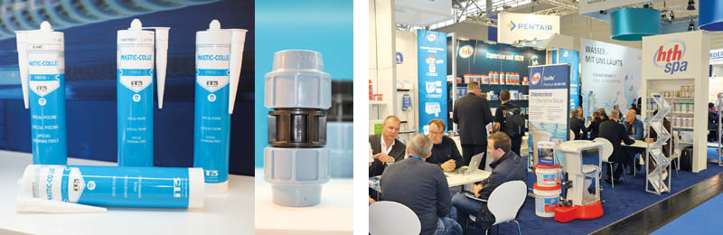 Sorodist confirme sa volonté de développement sur le marché allemand. Après le salon Interbad en 2016, le spécialiste des vannes, raccords et canalisations PVC pression était cette année à Cologne. Parmi les nouveautés : Mastic-Colle Hybride, un mastic colle piscine à base de polymères hybrides de nouvelle génération. Vu également chez Sorodist : DeltOne, un raccord à compression qui assure un emboîtement facile et sûr. (Gauche)