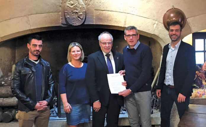 De gauche à droite : Benjamin Vié (formateur), Aurélie Roussel (responsable du centre de formation SCP Academy), Jean-Pierre Noyé (vice-président de l’Association du lycée), Jean-Louis Albouy (directeur général SCP France) et Benoît Rivière (SCP France).