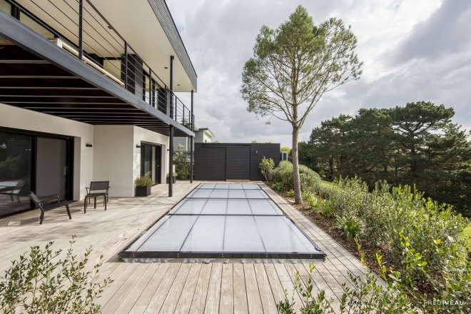 Côté développement durable, l’abri permet de limiter l’évaporation et donc de réduire la consommation d’eau. Dans sa version automatique, le moteur peut être alimenté par un panneau solaire, permettant ainsi de s’affranchir d’une installation électrique.