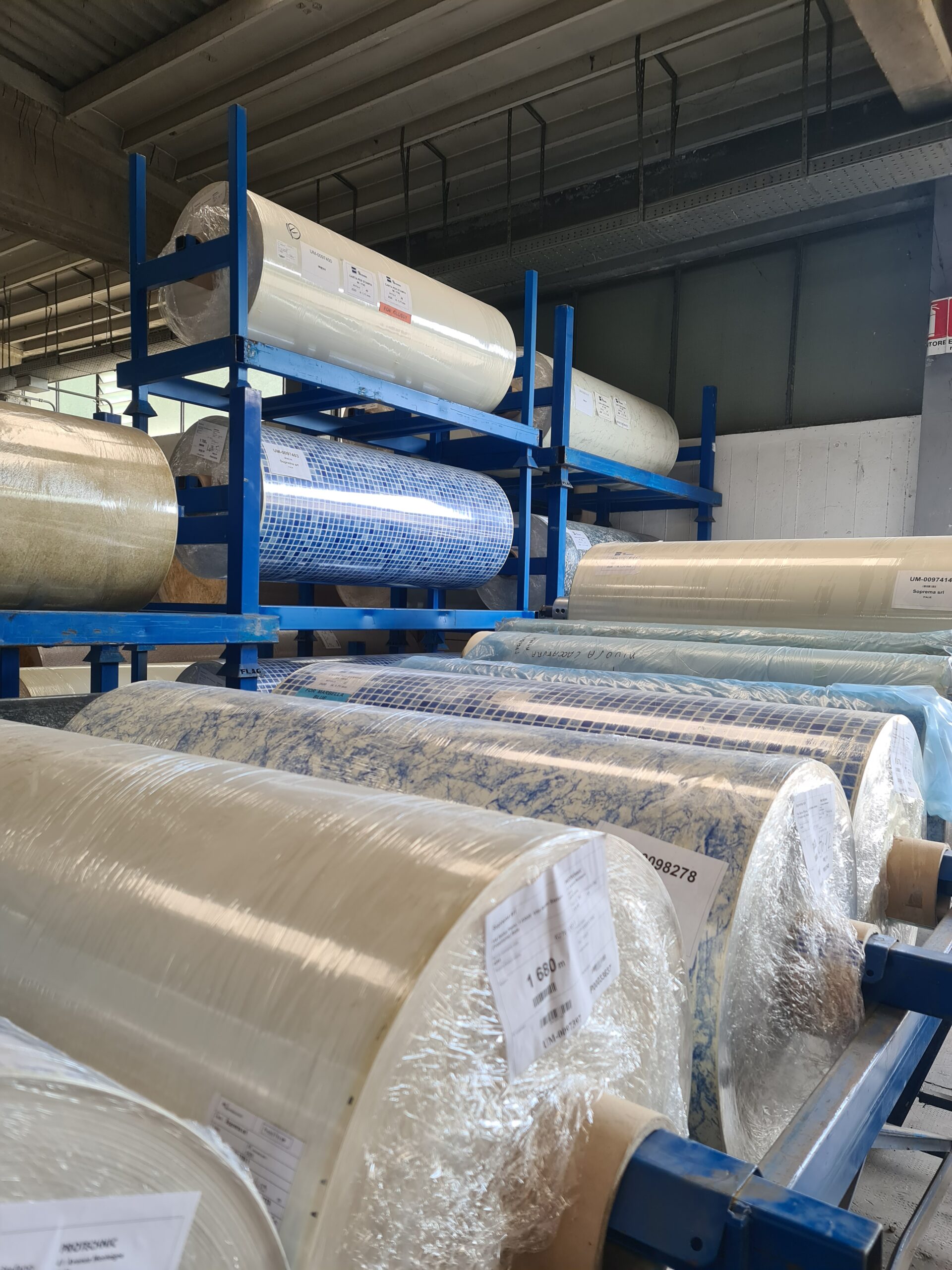 Dans l’univers de la piscine, nous sommes les seuls au monde à fabriquer des membranes par enduction, et non par calandrage, avec 4 couches d’enduit. Ce procédé consiste à recouvrir le « papier » de base d’une première couche d’enduit de 0,30mm avant de la passer au four et de renouveler l’opération jusqu’à atteindre une épaisseur de 1,5mm.